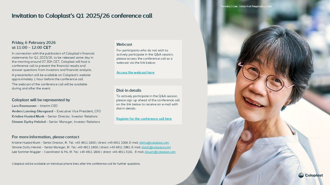 We’re a global business with one mission: making life easier for people with intimate healthcare needs. Here you can find all of the latest Coloplast investor insights: our results, upcoming events and news, important shareholder updates and much more.